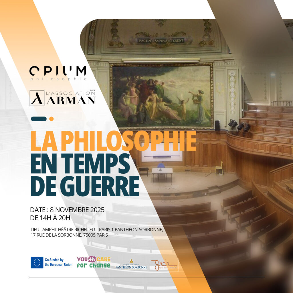 À l’occasion de la Journée mondiale de la philosophie, les associations Opium Philosophie et Arman ont le plaisir de vous inviter à une journée de conférences et de réflexions autour du thème : « La philosophie en temps de guerre ».